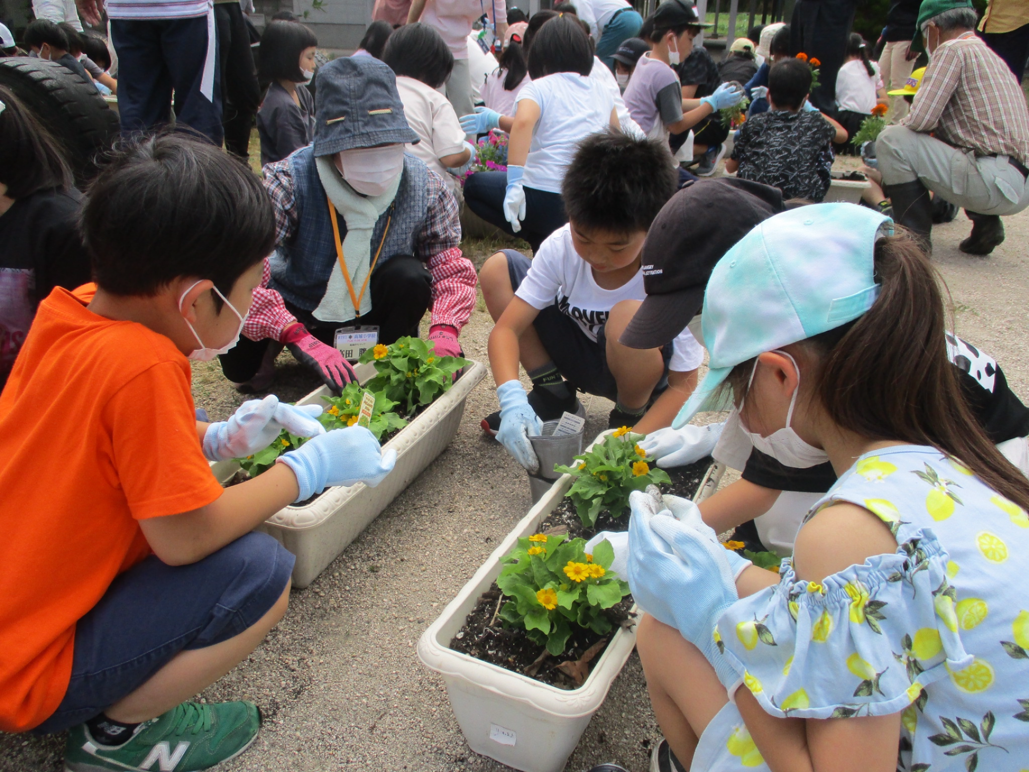 地域のボランティアの方は、どこに何を植えたら良いか教えてくださったり、いっしょにプランターを運んだりしてくださいます。